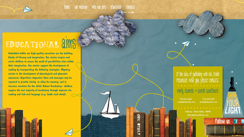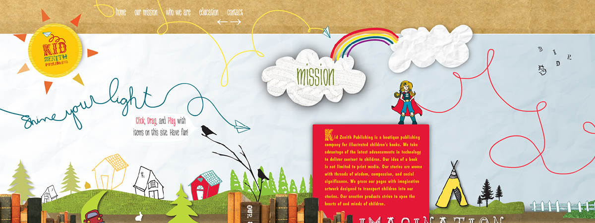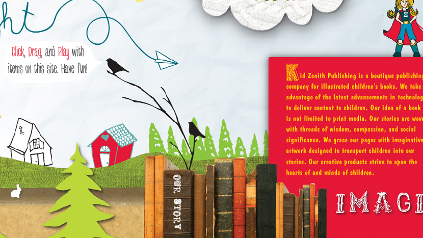 Interactive Website design, back-end, and front-end coding for Kid Zenith publishing.